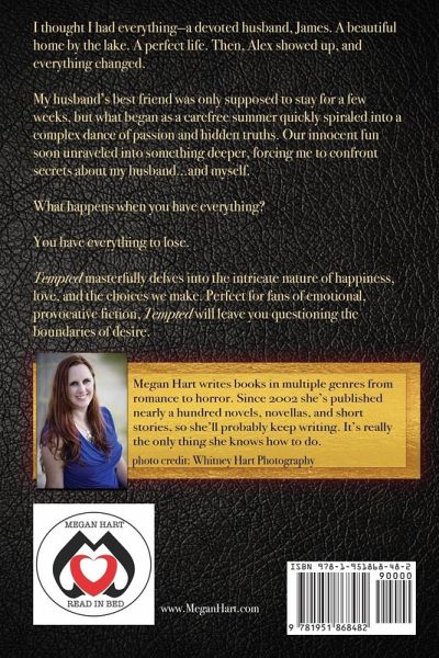 I thought I had everything-a devoted husband, James. A beautiful home by the lake. A perfect life. Then, Alex showed up, and everything changed. My husband's best friend was only supposed to stay for a few weeks, but what began as a carefree summer quickly spiraled into a complex dance of passion and hidden truths. Our innocent fun soon unraveled into something deeper, forcing me to confront secrets about my husband...and myself. What happens when you have everything? You have everything to lose. Tempted masterfully delves into the intricate nature of happiness, love, and the choices we make. Perfect for fans of emotional, provocative fiction, Tempted will leave you questioning the boundaries of desire.