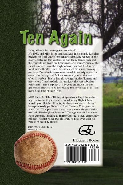 "Hey, Mike, what're we gonna do today?" It's 1960, and Mike is ten again, at least in his mind. Looking back on his final year of elementary school, he reflects on the many challenges that confronted him then. Junior high and the opposite sex loom on the horizon-his mini-version of the New Frontier. From the neighborhood baseball field to the local movie theatre, from Halloween to Christmas morning, and from Bozo buckets to a once-in-a-lifetime trip across the country to Disneyland, Mike is constantly in motion-and often in trouble. But he has his younger brother Tommy and a few close friends to help him navigate the vast suburban wilderness. This snapshot of a bygone era shows the last generation allowed to be kids taking full advantage of it-and having the time of their lives. MICHAEL J. BELLITO taught Speech and English, including creative writing classes, at John Hersey High School in Arlington Heights, Illinois, for thirty-two years. He has been previously published in North Shore, a Chicago-area magazine. That piece was a short story about his grandfather entitled "Waiting for a Pennant." Ten Again is his first novel. He is currently teaching at Harper College, a local community college. Having raised two children, he now lives with his wife in Wheeling, Illinois.