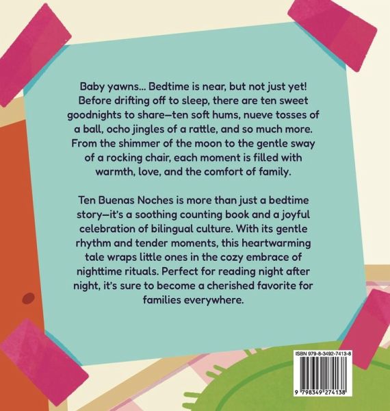 "Ten Buenas Noches" is a heartwarming bilingual bedtime story that celebrates the tender moments of family love and nighttime rituals. Written by Luz Maria Mack and beautifully illustrated by Fajar Affi Putra, this soothing counting book takes little ones on a gentle journey through ten sweet goodnights before sleep. From ten soft hums of the baby monitor to one big kiss from Mommy, each moment is filled with warmth, love, and the comfort of family. As the moon shimmers and the rocking chair sways, this book weaves together bilingual culture and the cozy embrace of bedtime routines. Perfect for reading night after night, "Ten Buenas Noches" is more than just a story-it's a joyful celebration of the bonds between parent and child. With its gentle rhythm and tender moments, this book is sure to become a cherished favorite for families everywhere. Ideal for bilingual households or anyone introducing a second language, "Ten Buenas Noches" combines English and Spanish in a way that is both engaging and accessible. Its soothing tone and heartwarming illustrations make it the perfect way to end the day, wrapping little ones in the comfort of love and the promise of sweet dreams. Let "Ten Buenas Noches" become a beloved part of your family's bedtime routine, filling your nights with warmth, love, and the joy of togetherness.