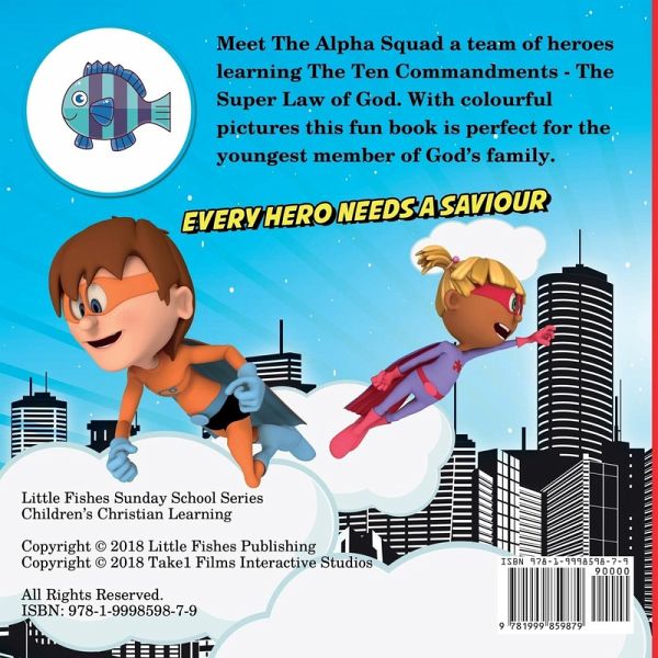 Children's Christian Learning presents the Little Fishes Sunday School Series of picture books for children. This beautifully illustrated Ten Commandments picture book helps children learn The Super Law of God - The Ten Commandments. Easy to use language helping to introduce young children to the Bible. Meet The Alpha Squad a team of heroes learning The Ten Commandments - The Super Law of God. With colourful pictures this fun book is perfect for the youngest member of God's family.