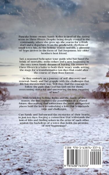 Pancake house owner, Sandy Keller is tired of the dating scene in Three Rivers. Despite being deeply rooted in the community where she grew up, she yearns for a fresh start and a departure from the predictable rhythms of small-town life. As the holiday season unfolds, a glimmer of hope arrives in the form of Tad Jorgensen, her older brother's best friend. Tad, a seasoned helicopter tour guide who has faced the brink of mortality, seeks solace and a new beginning in the very town Sandy dreams of leaving. His return to Three Rivers is a balm to both their weary souls, setting the stage for a transformative ten days that could alter the course of their lives forever. As they embark on a journey of self-discovery and renewal, Sandy and Tad grapple with the challenges that life has thrown their way. Will they find the courage to follow the path that God has laid out for them, overcoming obstacles and uncovering the true meaning of love? With twinkling holiday lights and the magic of the season, the duo explores the possibilities of a shared future, discovering that sometimes the most unexpected places hold the keys to unlocking a love that transcends time and challenges. Can Sandy and Tad unravel the mysteries of their hearts in just ten days, forging a connection that withstands the test of fate and finding solace in the arms of each other against the backdrop of a town that holds the promise of new beginnings?