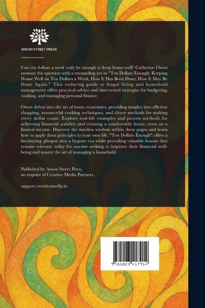 Can ten dollars a week truly be enough to keep house well? Catherine Owen answers this question with a resounding yes in "Ten Dollars Enough: Keeping House Well on Ten Dollars a Week; How It Has Been Done; How It May Be Done Again." This enduring guide to frugal living and household management offers practical advice and time-tested strategies for budgeting, cooking, and managing personal finance. Owen delves into the art of home economics, providing insights into efficient shopping, resourceful cooking techniques, and clever methods for making every dollar count. Explore real-life examples and proven methods for achieving financial stability and creating a comfortable home, even on a limited income. Discover the timeless wisdom within these pages and learn how to apply these principles to your own life. "Ten Dollars Enough" offers a fascinating glimpse into a bygone era while providing valuable lessons that remain relevant today for anyone seeking to improve their financial well-being and master the art of managing a household. This work has been selected by scholars as being culturally important, and is part of the knowledge base of civilization as we know it. This work is in the public domain in the United States of America, and possibly other nations. Within the United States, you may freely copy and distribute this work, as no entity (individual or corporate) has a copyright on the body of the work. Scholars believe, and we concur, that this work is important enough to be preserved, reproduced, and made generally available to the public. We appreciate your support of the preservation process, and thank you for being an important part of keeping this knowledge alive and relevant.