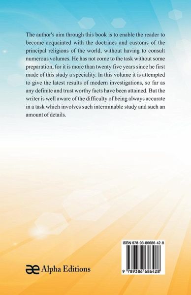The author's aim through this book is to enable the reader to become acquainted with the doctrines and customs of the principal religions of the world, without having to consult numerous volumes. He has not come to the task without some preparation, for it is more than twenty five years since he first made of this study a speciality. In this volume it is attempted to give the latest results of modern investigations, so far as any definite and trust worthy facts have been attained. But the writer is well aware of the difficulty of being always accurate in a task which involves such interminable study and such an amount of details.