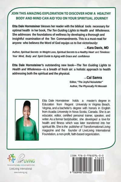 The Ten Guiding Lights to Health and Wholeness can put you on the right track to abundant life. If you are seeking a deeper understanding of health and wellness from a Christian perspective, then this health and wellness study will empower you to develop a more focused healthy lifestyle. If you are struggling to lose weight and you feel you have come up against some emotional blocks, then this study can help you find the healthy and new you. Using her background as a personal trainer and experience as a bodybuilder, Etta Dale shows you how to transform not just your body but your life. She provides a biblical study of the body, along with fitness and nutritional information to help you experience not just health but fullness of life. Learn how God intended the body to work. Shed unwanted weight physically, emotionally and mentally. Improve your spiritual life by learning how to care for the body in the way God designed it.