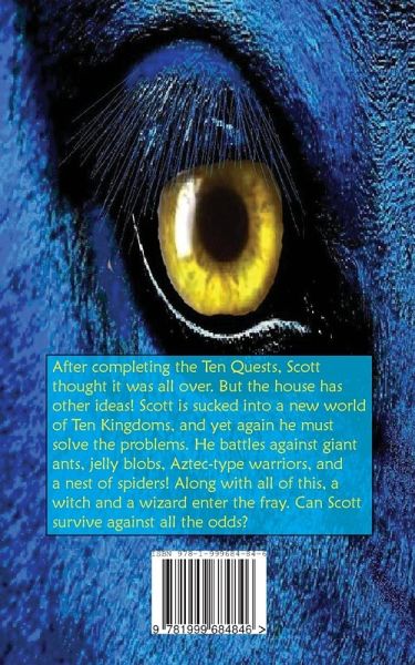 It's been over a year since Scott solved the Ten Quests inside the spooky house near his home. The old building collapsed into rubble and the land is now being redeveloped, so Scott is convinced that he'll never have to go through any of that nonsense again. Right? Wrong. One evening after school, when Scott is busy doing his homework, his attention is drawn to the painting of he and his friends outside the old house. He's sure he can see the oil painting ripple with the wind running through the grass. But that can't be, can it? Wrong again. Scott is whisked into the painting and is forced to face his biggest adventure yet. Ten Kingdoms. Ten pieces of the "Giver of Life" tile. From giant blobs to butterflies, from metal people to humungous spiders, Scott must brave the strange and often dangerous landscapes to secure each piece of the tile to have any hope of ever going home again.