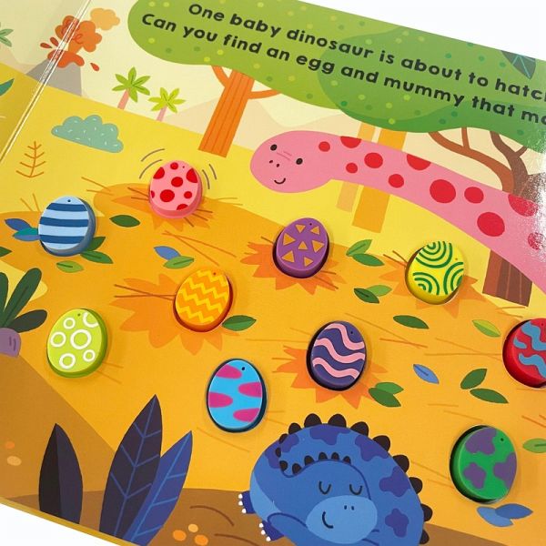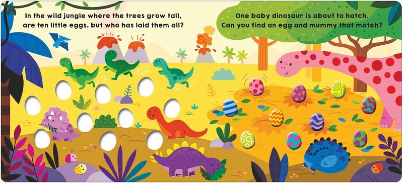 A perfect Easter gift for little ones that love dinosaurs, this search-and-find board book is filled with tactile squishy eggs that toddlers can match to the dinosaurs. Each dinosaur mummy has a unique pattern that children can match to one of the squishy eggs. Once found, children can turn the page to see the mummy dinosaur playing with her newly hatched baby. This action-packed book will delight young readers at story time. The colourful squishy eggs are great to press and count, whilst the bouncy rhyming text is great fun to read aloud. Celebrate 25 years of Priddy Books! Inspiring a love of learning in over 200 million babies, toddlers and young children.