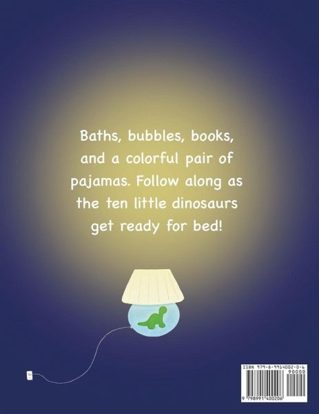 The ten little dinosaurs are all fed and now it is time to get ready for bed. Taking a bubble bath, putting on pajamas, brushing their teeth, tidying up their room, and reading a bedtime story, are just some of the things the ten little dinosaurs do to get ready for bed! Starting with one dinosaur, each page introduces a new dinosaur until all ten dinosaurs are fast asleep. Enjoy this bedtime story that incorporates counting, number recognition, and colorful illustrations!