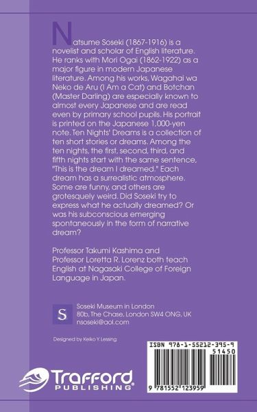 This famed collection of ten connected stories or dreams has a surrealistic atmosphere. The author, Natsume Soseki, is a novelist and scholar of English literature. He ranks with Mori Ogai (1862-1922) as major figure in modern Japanese literature. Among his works, Wagahai wa Neko de Aru (I am A Cat) and Bochan (Master Darling) are especially known to almost every Japanese and are read even by primary school pupils. His portrait is printed on the Japanese 1,000-yen note.