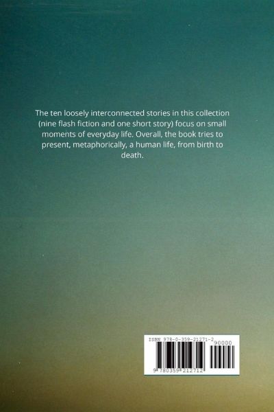 The ten loosely interconnected stories in this collection (nine flash fiction and one short story) focus on small moments of everyday life. Overall, the book tries to present, metaphorically, a human life, from birth to death.