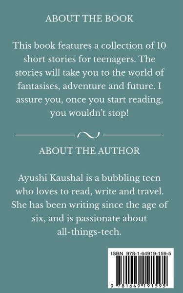 'Ten Tales for Teens' features a collection of 10 short stories for teenagers. These stories are about adventures, fantasies, and possible future. Each story is unique in itself. It might range from a story about a high-flying CEO, to one about a seemingly regular baker, to teleportation through a household object! Once you start reading, you wouldn't want to stop!