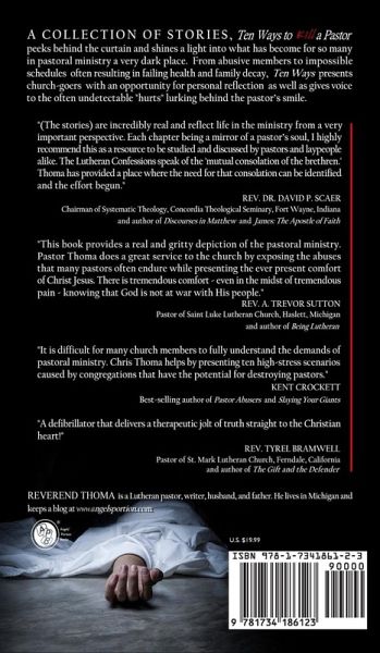 A collection of stories, Ten Ways to Kill a Pastor peeks behind the curtain and shines a light into what has become for so many in pastoral ministry a very dark place. From abusive members to impossible schedules often resulting in failing health and family decay, Ten Ways presents church-goers with an opportunity for personal reflection as well as gives voice to the often undetectable "hurts" lurking behind the pastor's smile.