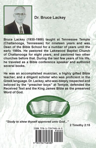 Dr. Bruce Lackey said: "These materials have been gleaned from much interest and research regarding the various methods of Bible study, beginning with a college course which the author took many years ago and continuing through years of teaching and pastoring. Many books on the subject have been read, and while none of them has been copied, it would have been impossible not to have been influenced by them. This book is the result of, not only those many books, but also actual techniques hammered out on the anvil of personal study for Bible classes and preaching services. They are tried and proven. Also, many students have testified to the profit of learning and using these methods. May the Spirit of God, who moved men to write the holy scriptures, use these chapters to the edifying of God's people everywhere."