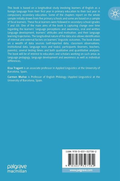 This book is based on a longitudinal study involving learners of English as a foreign language from their first year in primary education to their last year in compulsory secondary education. Some of the chapters report on the whole sample initially drawn from five primary schools and some are based on a sample of focal learners. These focal learners were followed in secondary school (grades 7 and 10). One of the main aims of the book is capturing change over time regarding the learners' language perceptions and awareness, oral and written language development, learners' attitudes and motivation, and their language learning trajectories. The longitudinal nature of the data also allows identification of internal and external factors on learners' linguistic outcomes. The book draws on a wealth of data sources (self-reported data, classroom observations, institutional data, language tests and tasks), participants (learners, teachers, parents), several testing times and both qualitative and quantitative analyses. The book will be of interest to educators and scholars working on such areas as language pedagogy, language development and awareness as well as individual differences.