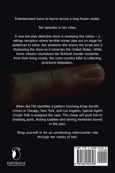 Entertainment turns to horror across a long frozen winter. Ten episodes in ten cities. A new live-play detective show is sweeping the nation - a ratings sensation where terrible crimes play out on stage for audiences to solve. But someone else knows the script and is shadowing the show as it traverses the United States. While home viewers countdown ten fictional murder mysteries from their living rooms, the cross-country killer is collecting gruesome keepsakes. When the FBI identifies a pattern involving three horrific crimes in Chicago, New York, and Los Angeles, Special Agent Lincoln Polk is assigned the case. This chase will push him to breaking point, testing loyalties and stirring memories buried in the past. Strap yourself in for an unrelenting rollercoaster ride through ten weeks of hell.