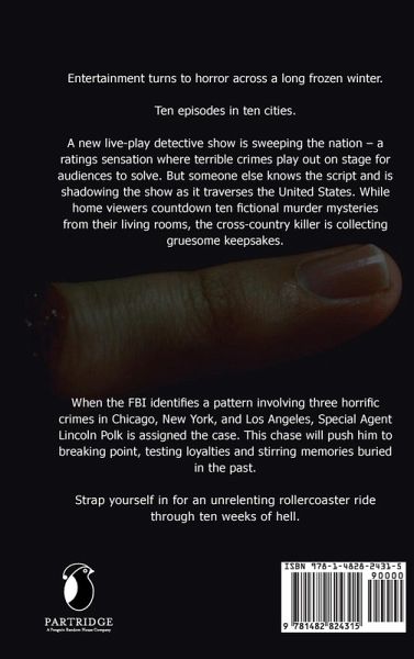 Entertainment turns to horror across a long frozen winter. Ten episodes in ten cities. A new live-play detective show is sweeping the nation - a ratings sensation where terrible crimes play out on stage for audiences to solve. But someone else knows the script and is shadowing the show as it traverses the United States. While home viewers countdown ten fictional murder mysteries from their living rooms, the cross-country killer is collecting gruesome keepsakes. When the FBI identifies a pattern involving three horrific crimes in Chicago, New York, and Los Angeles, Special Agent Lincoln Polk is assigned the case. This chase will push him to breaking point, testing loyalties and stirring memories buried in the past. Strap yourself in for an unrelenting rollercoaster ride through ten weeks of hell.