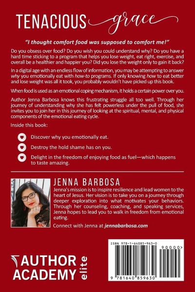 "I thought comfort food was supposed to comfort me!" Do you obsess over food? Do you wish you could understand why? Do you have a hard time sticking to a program that helps you lose weight, eat right, exercise, and overall be a healthier and happier you? Did you lose the weight only to gain it back? In a digital age with an endless flow of information, you may be attempting to answer why you emotionally eat with how-to programs. If only knowing how to eat better and lose weight was all it took, you probably wouldn't have picked up this book. When food is used as an emotional coping mechanism, it holds a certain power over you. Author Jenna Barbosa knows this frustrating struggle all too well. Through her journey of understanding why she has felt powerless under the pull of food, she invites you to join her in this journey of looking at the spiritual, mental, and physical components of the emotional eating cycle. Inside this book:-Discover why you emotionally eat.-Destroy the hold shame has on you.-Delight in the freedom of enjoying food as fuel - which happens to taste amazing.