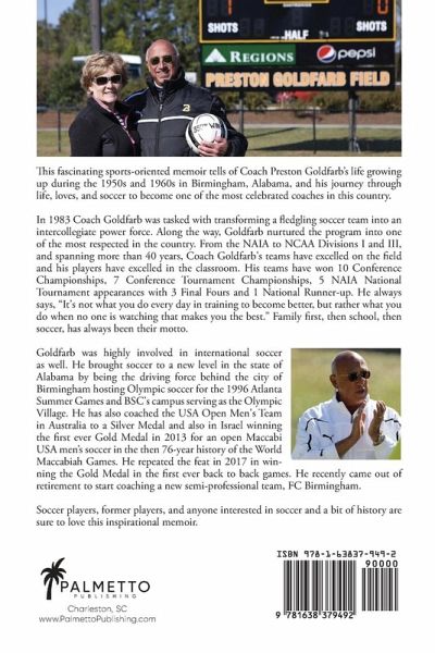 This fascinating sports-oriented memoir tells of Coach Preston Goldfarb's life growing up during the 1950s and 1960s in Birmingham, Alabama, and his journey to become one of the most celebrated soccer coaches in this country. In 1983 he was tasked with transforming a fledgling soccer team into an intercollegiate power force. His motto: "It's not what you do every day in training to become better, but rather what you do when no one is watching that makes you the best." Family first, then school, then soccer. Goldfarb also brought soccer to a new level in the state of Alabama by being the driving force behind the city of Birmingham hosting Olympic soccer for the 1996 Atlanta Summer Games and BSC's campus serving as the Olympic Village. He recently came out of retirement to start coaching a new semi-professional team, FC Birmingham.