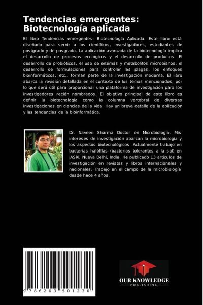 El libro Tendencias emergentes: Biotecnología Aplicada. Este libro está diseñado para servir a los científicos, investigadores, estudiantes de postgrado y de posgrado. La aplicación avanzada de la biotecnología implica el desarrollo de procesos ecológicos y el desarrollo de productos. El desarrollo de probióticos, el uso de enzimas y metabolitos microbianos, el desarrollo de formulaciones para controlar las plagas, los enfoques bioinformáticos, etc., forman parte de la investigación moderna. El libro abarca la revisión detallada en el contexto de los temas mencionados, por lo que será útil para proporcionar una plataforma de investigación para los investigadores recién nombrados. El objetivo principal de este libro es definir la biotecnología como la columna vertebral de diversas investigaciones en ciencias de la vida. Hay un breve detalle de la aplicación y las tendencias de la bioinformática.
