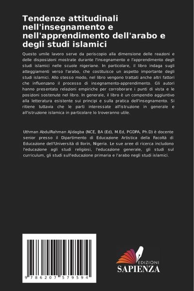 Questo umile lavoro serve da periscopio alla dimensione delle reazioni e delle disposizioni mostrate durante l'insegnamento e l'apprendimento degli studi islamici nelle scuole nigeriane. In particolare, il libro indaga sugli atteggiamenti verso l'arabo, che costituisce un aspetto importante degli studi islamici. Allo stesso modo, nel libro vengono trattati anche altri fattori che influenzano il processo di insegnamento-apprendimento. Gli autori hanno presentato relazioni empiriche per corroborare i punti di vista e le posizioni sostenute nel libro. In generale, il libro è un compendio aggiuntivo alla letteratura esistente sui principi e sulla pratica dell'insegnamento. Si ritiene tuttavia che le parti interessate all'istruzione in generale e all'istruzione islamica in particolare lo troveranno utile.