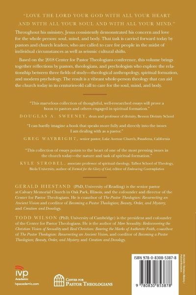 Throughout his ministry, Jesus consistently demonstrated his concern and love for the whole person: soul, mind, and body. That task is carried forward today by pastors and church leaders, who are called to care for people in the midst of individual circumstances as well as seismic cultural shifts. How might that calling be informed by recent developments in psychology? How should the church attend to matters of mental health? How might psychology and counseling aid us in our spiritual formation? Based on the 2018 Center for Pastor Theologians conference, this volume brings together reflections by pastors, theologians, and psychologists who explore the relationships among three fields of study--theological anthropology, spiritual formation, and modern psychology. The result is a vibrant whole-person theology that can aid the church today in its centuries-old call to care for the soul, mind, and body. Based on annual CPT conferences, the volumes in the Center for Pastor Theologians series bring together the reflections of pastors and theologians who desire to make ongoing contributions to the wider scholarly community for the renewal of both theology and the church.
