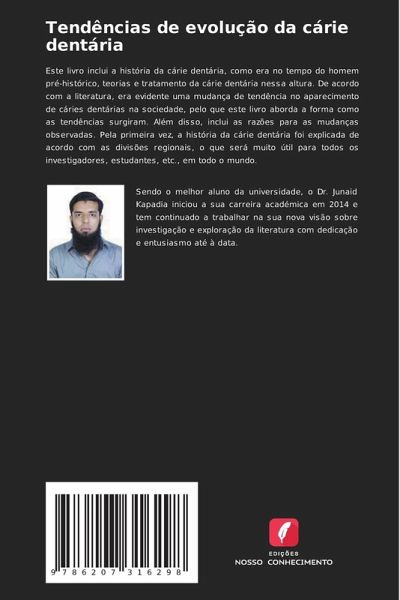 Este livro inclui a história da cárie dentária, como era no tempo do homem pré-histórico, teorias e tratamento da cárie dentária nessa altura. De acordo com a literatura, era evidente uma mudança de tendência no aparecimento de cáries dentárias na sociedade, pelo que este livro aborda a forma como as tendências surgiram. Além disso, inclui as razões para as mudanças observadas. Pela primeira vez, a história da cárie dentária foi explicada de acordo com as divisões regionais, o que será muito útil para todos os investigadores, estudantes, etc., em todo o mundo.