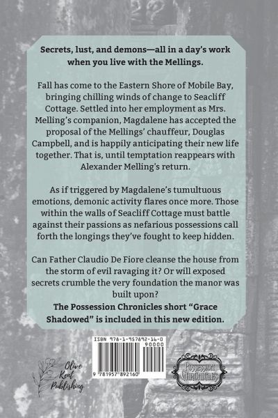 Secrets, lust, and demons-all in a day's work when you live with the Mellings. Fall has come to the Eastern Shore of Mobile Bay, bringing chilling winds of change to Seacliff Cottage. Settled into her employment as Mrs. Melling's companion, Magdalene has accepted the proposal of the Mellings' chauffeur, Douglas Campbell, and is happily anticipating their new life together. That is, until temptation reappears with Alexander Melling's return. As if triggered by Magdalene's tumultuous emotions, demonic activity flares once more. Those within the walls of Seacliff Cottage must battle against their passions as nefarious possessions call forth the longings they've fought to keep hidden. Can Father Claudio De Fiore cleanse the house from the storm of evil ravaging it? Or will exposed secrets crumble the very foundation the manor was built upon? The Possession Chronicles short "Grace Shadowed" is included in this new edition.