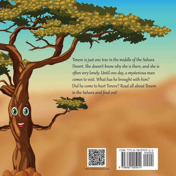 Introducing 'Tenere: A Special Tree in the Sahara Desert' - a captivating story inspired from a true story. Tenere is a unique tree that stands alone in the heart of the Sahara. Tenere wonders who planted her in the middle of the desert, and how she ended up here, surrounded by nothing but sand. Over the years, as the heat in the desert becomes unbearable, many of Tenere's animal friends migrate to greener pastures, leaving her feeling lonely and isolated. Tenere often imagines what it would be like to be a part of a thriving community, like the trees in Central Park in New York City. Just when all hope seems lost, something mysterious and life-changing happens to Tenere. Unlock the secrets of Tenere's incredible journey, and discover her true purpose in 'Tenere: A Special Tree in the Sahara Desert'" The story of Tenere is a unique and inspiring one that teaches children about resilience, belongingness, difference, diversity, and sustainability in a relatable and engaging way. Our partnership with One Tree Planted ensures a tree is planted for every book sold, supporting reforestation efforts globally.