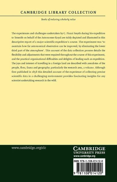 The experiences and challenges undertaken by C. Piazzi Smyth during his expedition to Tenerife on behalf of the Astronomer Royal are richly depicted and illustrated in this descriptive report of a major scientific expedition's course. The experiment was 'to ascertain how far astronomical observation can be improved, by eliminating the lower third part of the atmosphere'. This account of the data collection process details the flexibility and adjustments that were required throughout the course of this experiment, and the practical organisational difficulties and delights of leading such an expedition. The joys and interest of travelling in a foreign land are described with anecdotes of the people, flora, fauna and geography; particularly the research area, a volcano. Although first published in 1858 this detailed account of the experience of collecting precise scientific data in a challenging environment provides fascinating insights for any scientist undertaking research in the wild.