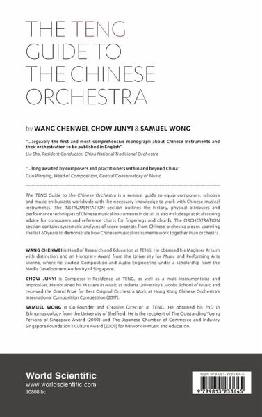 The TENG Guide to the Chinese Orchestra serves as a one-stop guide for composers, scholars and enthusiasts alike. As the most updated English publication of its kind, the book is a seminal work on instrumentation and orchestration for instruments of the Chinese orchestra. The instrumentation section builds upon QI — An Instrumental Guide to the Chinese Orchestra (2005), and introduces each instrument's history, physical attributes and performance techniques in detail, richly illustrated by photographs. New content includes practical scoring advice for composers and reference charts for fingerings and chords. In the orchestration section, the book systematically analyses score excerpts of various Chinese orchestra pieces spanning the last 60 years, highlighting examples of orchestration. Composers can pick up useful techniques while scholars and enthusiasts can appreciate how Chinese instruments work together in an orchestra.