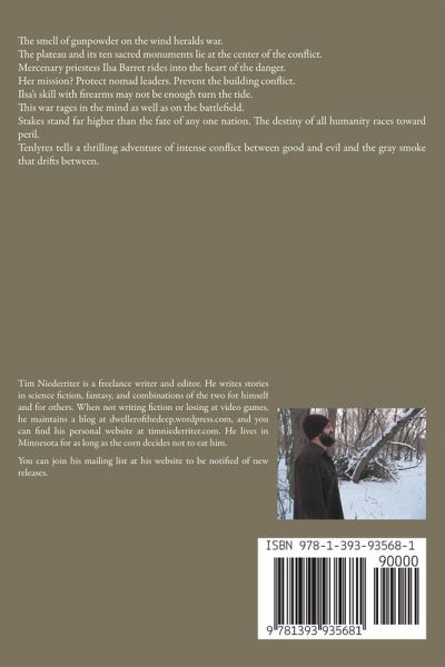The smell of gunpowder on the wind heralds war. The plateau and its ten sacred monuments lie at the center of the conflict. Mercenary priestess Ilsa Barret rides into the heart of the danger. Her mission? Protect nomad leaders. Prevent the building conflict. Ilsa's skill with firearms may not be enough turn the tide. This war rages in the mind as well as on the battlefield. Stakes stand far higher than the fate of any one nation. The destiny of all humanity races toward peril. Tenlyres tells a thrilling adventure of intense conflict between good and evil and the gray smoke that drifts between.