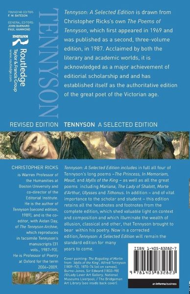 Drawn from the author's own "The Poems of Tennyson", this book includes in full all four of Tennyson's long poems - "The Princess", "In Memoriam", "Maud", and "Idylls of the King" - as well as other great poems including "Mariana", "The Lady of Shalott", "Morte d'Arthur", "Ulysses" and "Tithonus". It is of interest to scholars and students.