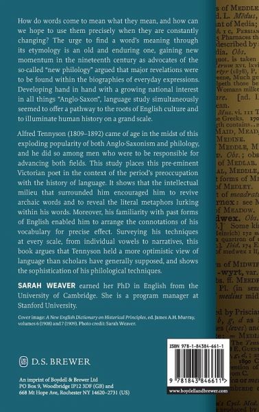 Considers Tennyson's poems, from the elegiac In Memoriam to the Arthurian Idylls of the King, in the context of Victorian interest in philology. How do words come to mean what they mean, and how can we hope to use them precisely when they are constantly changing? The urge to find a word's meaning through its etymology is an old and enduring one, gaining new momentum in the nineteenth century as advocates of the so-called "new philology" argued that major revelations were to be found within the biographies of everyday expressions. Developing hand in hand with a growing national interest in all things "Anglo-Saxon", language study simultaneously seemed to offer a pathway to the roots of English culture and to illuminate human history on a grand scale. Alfred Tennyson (1809-1892) came of age in the midst of this exploding popularity of both Anglo-Saxonism and philology, and he did so among men who were to be responsible for advancing both fields. This study places this preeminent Victorian poet in the context of the period's preoccupation with the history of language. It shows that the intellectual milieu that surrounded him encouraged him to revive archaic words and to reveal the literal metaphors lurking within his words. Moreover, his familiarity with past forms of English enabled him to arrange the connotations of his vocabulary for precise effect. Surveying his techniques at every scale, from individual vowels to narratives, this book argues that Tennyson held a more optimistic view of language than scholars have generally supposed, and shows the sophistication of his philological techniques.