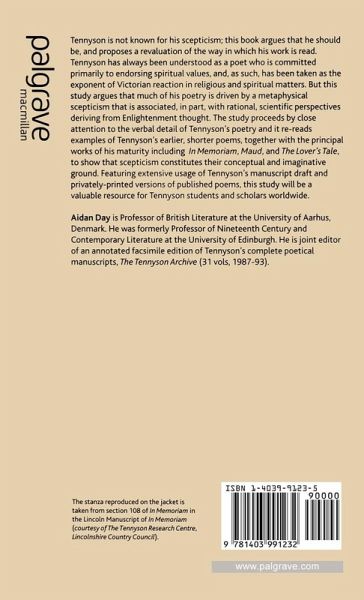 Tennyson is not known for his scepticism. This book argues that he should be. It proposes a revaluation of the way in which his work is read. Tennyson has always been understood as a poet who is committed primarily to endorsing spiritual values. But this study argues that much of his poetry is driven by a metaphysical scepticism that is associated, in part, with rational perspectives deriving from Enlightenment thought. The scepticism in Tennyson's poetry partakes in the complex generation of the modern that was taking place in his era. One of the purposes of the study is to demonstrate that a cultural studies approach to Tennyson trivialises his intellectual subtlety and complexity. Making extensive critical use of Tennyson's manuscript drafts, this study provides close readings of Tennyson's earlier, shorter poems, together with the principal works of his maturity including In Memoriam , Maud and The Lover's Tale , and will be a valuable resource for Tennyson students and scholars worldwide.