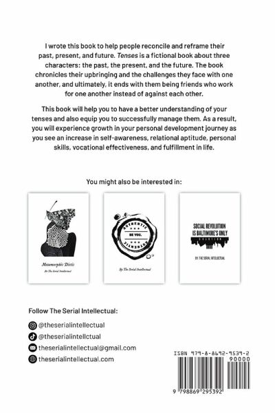 I wrote this book to help people reconcile and reframe their past present and future. Tenses is a fictional book about three characters; the past, the present and the future. The book chronicles their upbringing, the challenges they face with one another and ultimately ends with them being friends who are working for one another instead of against each other. This book will help you to have a better understanding of your tenses, and also equip you to successfully manage them. As a result you will experience growth in your personal development journey as you see an increase in self-awareness, relational aptitude, personal skills, vocational effectiveness and fulfillment in life.