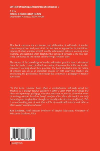 "In this book, Amanda Berry offers a comprehensive self-study about her practices as a Biology teacher educator. It offers a clear grasp of the issues and ideas underpinning a pedagogy of teacher education in practice. Framed in terms of teaching tensions based on Berry's analysis of her data, this book is is not only interesting and insightful but also offers a model for the direction of self-study. This is an outstanding piece of work that will be of considerable interest and value to other teacher education scholars." - Ken Zeichner, Hoefs-Bascom Professor of Teacher Education, University of Wisconsin-Madison