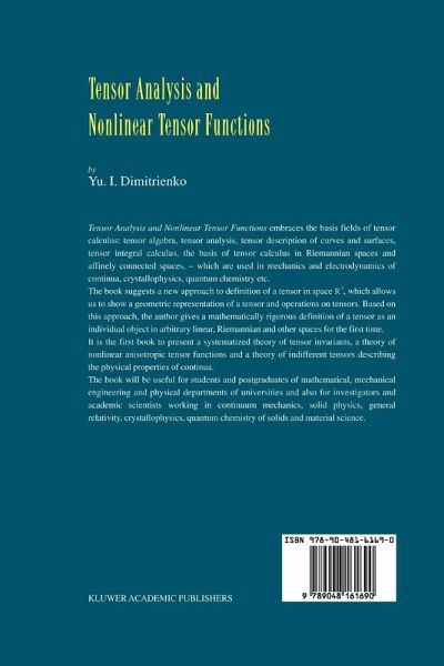 Tensor Analysis and Nonlinear Tensor Functions embraces the basic fields of tensor calculus: tensor algebra, tensor analysis, tensor description of curves and surfaces, tensor integral calculus, the basis of tensor calculus in Riemannian spaces and affinely connected spaces, - which are used in mechanics and electrodynamics of continua, crystallophysics, quantum chemistry etc.