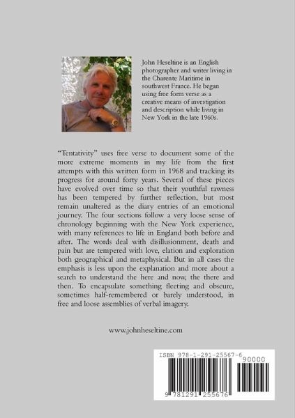 "Tentativity" documents in free verse some of the more extreme moments in my life from the first attempts with this written form in 1968 and tracking its progress for around forty years as the diary entries of an emotional journey. The four sections follow a very loose sense of chronology beginning with the New York experience, with many references to life in England both before and after. The words deal with disillusionment, death and pain but are tempered with love, elation and exploration both geographical and metaphysical. But in all cases the emphasis is less upon the explanation and more about a search to understand the here and now, the there and then. To encapsulate something fleeting and obscure, sometimes half-remembered or barely understood, in free and loose assemblies of verbal imagery.