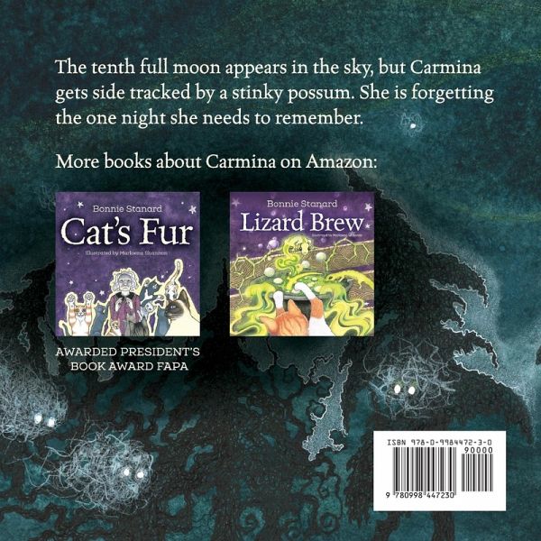 Written by award winning author Bonnie Stanard. Stunning illustrations on every page. An offbeat Halloween story about a mysterious witch who can live forever as long as she remembers to call down the magic of the tenth full moon.