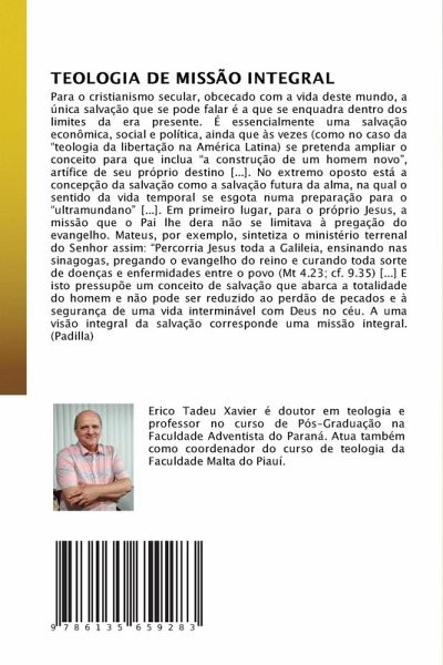 Para o cristianismo secular, obcecado com a vida deste mundo, a única salvação que se pode falar é a que se enquadra dentro dos limites da era presente. É essencialmente uma salvação econômica, social e política, ainda que às vezes (como no caso da "teologia da libertação na América Latina) se pretenda ampliar o conceito para que inclua "a construção de um homem novo", artífice de seu próprio destino [...]. No extremo oposto está a concepção da salvação como a salvação futura da alma, na qual o sentido da vida temporal se esgota numa preparação para o "ultramundano" [...]. Em primeiro lugar, para o próprio Jesus, a missão que o Pai lhe dera não se limitava à pregação do evangelho. Mateus, por exemplo, sintetiza o ministério terrenal do Senhor assim: "Percorria Jesus toda a Galileia, ensinando nas sinagogas, pregando o evangelho do reino e curando toda sorte de doenças e enfermidades entre o povo (Mt 4.23; cf. 9.35) [...] E isto pressupõe um conceito de salvação que abarca a totalidade do homem e não pode ser reduzido ao perdão de pecados e à segurança de uma vida interminável com Deus no céu. A uma visão integral da salvação corresponde uma missão integral. (Padilla)
