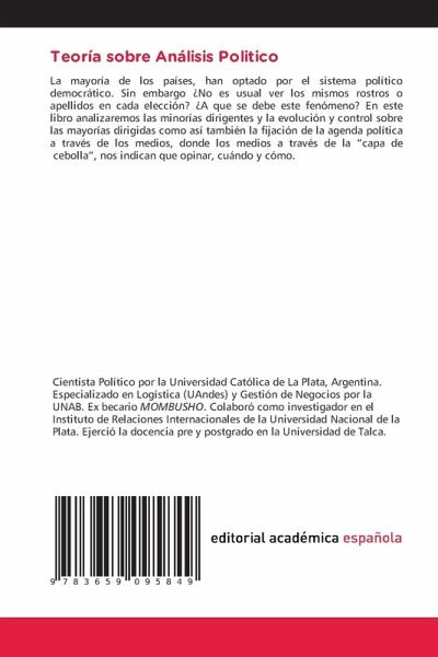 La mayoría de los países, han optado por el sistema político democrático. Sin embargo ¿No es usual ver los mismos rostros o apellidos en cada elección? ¿A que se debe este fenómeno? En este libro analizaremos las minorías dirigentes y la evolución y control sobre las mayorías dirigidas como así también la fijación de la agenda política a través de los medios, donde los medios a través de la "capa de cebolla", nos indican que opinar, cuándo y cómo.