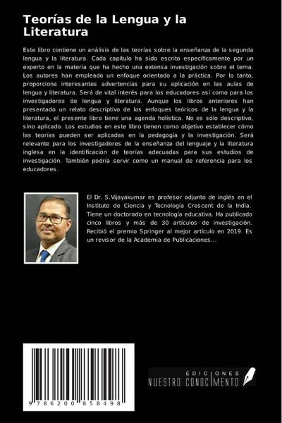 Este libro contiene un análisis de las teorías sobre la enseñanza de la segunda lengua y la literatura. Cada capítulo ha sido escrito específicamente por un experto en la materia que ha hecho una extensa investigación sobre el tema. Los autores han empleado un enfoque orientado a la práctica. Por lo tanto, proporciona interesantes advertencias para su aplicación en las aulas de lengua y literatura. Será de vital interés para los educadores así como para los investigadores de lengua y literatura. Aunque los libros anteriores han presentado un relato descriptivo de los enfoques teóricos de la lengua y la literatura, el presente libro tiene una agenda holística. No es sólo descriptivo, sino aplicado. Los estudios en este libro tienen como objetivo establecer cómo las teorías pueden ser aplicadas en la pedagogía y la investigación. Será relevante para los investigadores de la enseñanza del lenguaje y la literatura inglesa en la identificación de teorías adecuadas para sus estudios de investigación. También podría servir como un manual de referencia para los educadores.