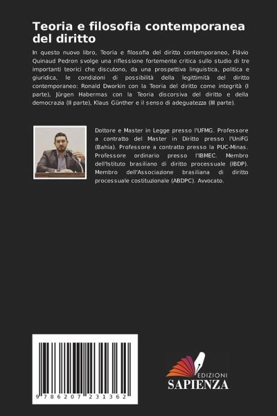 In questo nuovo libro, Teoria e filosofia del diritto contemporaneo, Flávio Quinaud Pedron svolge una riflessione fortemente critica sullo studio di tre importanti teorici che discutono, da una prospettiva linguistica, politica e giuridica, le condizioni di possibilità della legittimità del diritto contemporaneo: Ronald Dworkin con la Teoria del diritto come integrità (I parte), Jürgen Habermas con la Teoria discorsiva del diritto e della democrazia (II parte), Klaus Günther e il senso di adeguatezza (III parte).