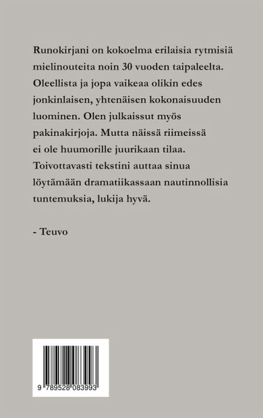 Kokoelma runoistani 30 vuoden taipaleelta. Pelottavaa lyriikkaa.