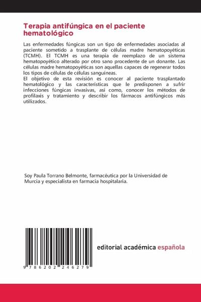 Las enfermedades fúngicas son un tipo de enfermedades asociadas al paciente sometido a trasplante de células madre hematopoyéticas (TCMH). El TCMH es una terapia de reemplazo de un sistema hematopoyético alterado por otro sano procedente de un donante. Las células madre hematopoyéticas son aquellas capaces de regenerar todos los tipos de células de células sanguíneas.El objetivo de esta revisión es conocer al paciente trasplantado hematológico y las características que le predisponen a sufrir infecciones fúngicas invasivas, así como, conocer los métodos de profilaxis y tratamiento y describir los fármacos antifúngicos más utilizados.