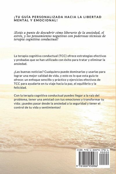¡Tu guía personalizada hacia la libertad mental y emocional! ¡Estás a punto de descubrir cómo liberarte de la ansiedad, el estrés, y los pensamientos negativos con poderosas técnicas de terapia cognitiva conductual! La terapia cognitiva conductual (TCC) ofrece estrategias efectivas y probadas que se han utilizado con éxito para tratar y eliminar la ansiedad. ¿Las buenas noticias? Cualquiera puede dominarlas y usarlas para lograr una mejor calidad de vida, y esto es lo que esta guía te ofrece: un enfoque sencillo y práctico y ejercicios efectivos de TCC para ayudarte en tu viaje hacia la paz, el equilibrio y la felicidad. Con la terapia cognitiva conductual puedes llegar a la raíz del problema, tener una amistad con tus emociones y transformar tu vida; ¡puedes pasar desde la ansiedad a la seguridad y tener el control de tu vida y sentimientos! Aquí te dejo una breve vista previa de lo que encontrarás en su interior: - Cómo darse cuenta de que la ansiedad está tratando de ser tu amiga - La ansiedad es una emoción: una experiencia de todo el cuerpo - Algunos desencadenantes en los que quizás no hayas pensado - La función holística de las emociones - ¡Veamos tu nivel de ansiedad y tracemos una ruta para que tu nivel de ansiedad sea el que tú elijas! - Aprende lo que está causando tu respuesta ansiosa para llegar a la raíz del problema y finalmente sanar tu vida - Comprender los enfoques cognitivos conductuales y descubrir cuáles son tus creencias inconscientes - Aprender los estilos de pensamiento que te hacen sentir más ansiedad y cambiarlos - El pensamiento en blanco y negro y qué hacer al respecto -De la ansiedad a la seguridad - tu transformación personal - Cómo aumentar tus emociones positivas - Las habilidades para auto-calmarse de la consciencia plena + Ejercicios prácticos (estilo libro de ejercicios) incluidos Como puedes ver, ¡la TCC no tiene que tratarse sobre rituales complicados, retiros caros y manuales de autoayuda que son difíciles! Todo se reduce a sumergirse profundamente, tener una amistad con tus emociones (tanto buenas como malas) y comprender tu conciencia. En este libro, encontrarás técnicas efectivas para salir de tu pensamiento ansioso y estresante y permitir que tu mente comprenda la TCC para que puedas alcanzar la paz y la felicidad en todas las áreas de tu vida...