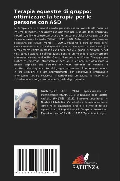 Le terapie che utilizzano il cavallo possono essere considerate come un insieme di tecniche rieducative che agiscono per superare danni sensoriali, motori, cognitivi e comportamentali, attraverso un'attività ludico-sportiva che ha come mezzo il cavallo (Citterio, 1991, p.20). Nella nuova classificazione americana dei disturbi mentali, il DSM-V, l'autismo e altre sindromi sono state assorbite in un'unica diagnosi, i disturbi dello spettro autistico (ASD). Il cambiamento riflette la stessa condizione con due gruppi di sintomi: deficit nella comunicazione e nell'interazione sociale; un modello di comportamenti e interessi ristretti e ripetitivi. Questo libro propone l'Equine Therapy come pratica psicomotoria, strutturata in sessioni di gruppo, per ottimizzare la terapia applicata alle persone con ASD, cercando di valutare le caratteristiche degli operatori del gruppo, attraverso il loro comportamento, le loro attitudini e il loro apprendimento, con l'obiettivo di promuovere l'interazione sociale reciproca, l'intenzionalità dell'azione, la nozione di individuazione e l'organizzazione sensoriale degli operatori.