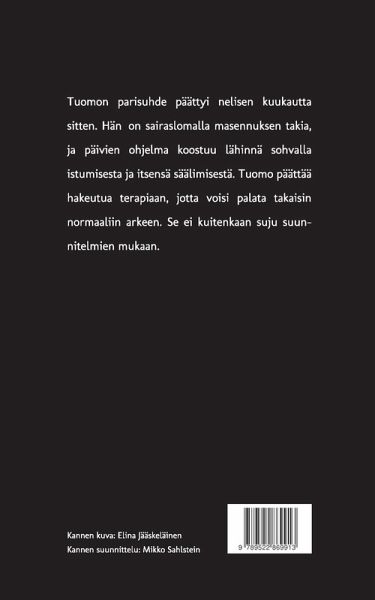Tuomon parisuhde päättyi nelisen kuukautta sitten. Hän on sairaslomalla masennuksen takia, ja päivien ohjelma koostuu lähinnä sohvalla istumisesta ja itsensä säälimisestä. Tuomo päättää hakeutua terapiaan, jotta voisi palata takaisin normaaliin arkeen. Se ei kuitenkaan suju suunnitelmien mukaan.