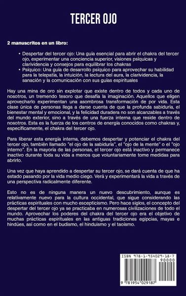Hay una mina de oro sin explotar que existe dentro de todos y cada uno de nosotros, un tremendo tesoro que desafía la imaginación. Si usted quiere descubrir esto, entonces siga leyendo... Dos manuscritos en un libro:Despertar del tercer ojo: Una guía esencial para abrir el chakra del tercer ojo, experimentar una conciencia superior, visiones psíquicas y clarividencia y consejos para equilibrar los chakras Psíquico: Una guía de desarrollo psíquico para aprovechar su habilidad para la telepatía, la intuición, la lectura del aura, la clarividencia, la sanación y la comunicación con sus guías espirituales Desde el comienzo de la historia de la humanidad, el chakra del tercer ojo ha sido reconocido y reverenciado por las culturas antiguas como una entidad poderosa que es la puerta de entrada del mundo físico al mundo no físico. Ha sido descrito como "el asiento del alma", "el ojo de la sabiduría", "el ojo interno" y "el ojo de la mente". Despertar el tercer ojo para aprovechar sus increíbles poderes ha sido durante mucho tiempo la búsqueda de muchas escuelas espirituales, incluyendo el budismo y el hinduismo. Hoy en día, sigue siendo la búsqueda de aquellos que procuran la felicidad, la salud y el bienestar. Cuando despertamos, el tercer ojo nos permite penetrar en el reino espiritual no físico (pero muy real), donde podemos encontrar el verdadero enriquecimiento y propósito del que carecemos. Este es el reino de nuestra conciencia superior donde podemos reclamar nuestra más profunda intuición, nuestra más alta sabiduría y abundancia interior para convertirnos en seres humanos más saludables, más productivos y más felices. Hoy, lentamente, pero con seguridad, la ciencia ha comenzado a confirmar esto. Este libro es una guía paso a paso que contiene todo lo que usted necesita saber sobre su ojo interno y los pasos necesarios para despertarlo. Algunos de los temas y preguntas cubiertos en la primera parte de este libro incluyen:Cómo despertar su tercer ojo para llevar su cuerpo físico y espiritual a la armonía, dándole el poder de vivir como su ser más elevado posible Técnicas básicas para abrir el tercer ojo Cómo nutrir su tercer ojo con dieta, cristales, color, aceites esenciales y afirmaciones Cómo equilibrar el sistema de chakras Prepararse para los dones espirituales de los sueños psíquicos, ver auras y clarividencia Cómo interpretar los sueños psíquicos y los mensajes intuitivos Y mucho más, incluyendo visualizaciones, cambios en el estilo de vida, y simples consejos y métodos para agregar a su rutina Si usted es uno de los que ha tenido experiencias que no puede explicar y quiere profundizar en el mundo de los fenómenos psíquicos entonces la segunda parte de este libro perfecto para usted. Además, al leer esto, aprenderá a aprovechar sus habilidades psíquicas naturales siguiendo ejercicios simples, pero efectivos que fortalecerán sus habilidades. Algunos de los temas y preguntas cubiertos en la segunda parte de este libro incluyen:La verdadera naturaleza de las habilidades y fenómenos psíquicos Cómo desarrollar su sentido de la intuición La mediumnidad y cómo canalizar espíritus difuntos Cómo leer el aura y determinar su significado Comprender el papel de los chakras en la salud y el bienestar psíquico Descubriendo y desarrollando sus habilidades en telepatía Y mucho más... Si lucha por encontrar un sentido a su vida, creyendo que hay más en esta existencia que su rutina diaria común y corriente, entonces este libro es para usted. ¡Obtenga este libro ahora para aprender más sobre el despertar del tercer ojo!
