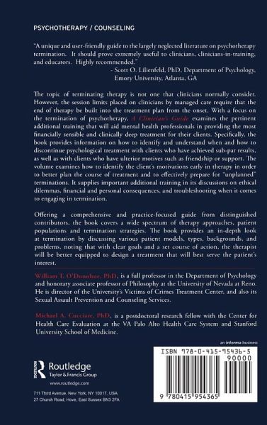 With a focus on the termination of psychotherapy, A Clinicianà â â s Guide provides an in-depth look at termination by discussing various patient models, types, backgrounds, and problems, noting that with clear goals and a set course of action, the therapist will be better equipped to design a treatment that will best serve the patientà â â s interest.