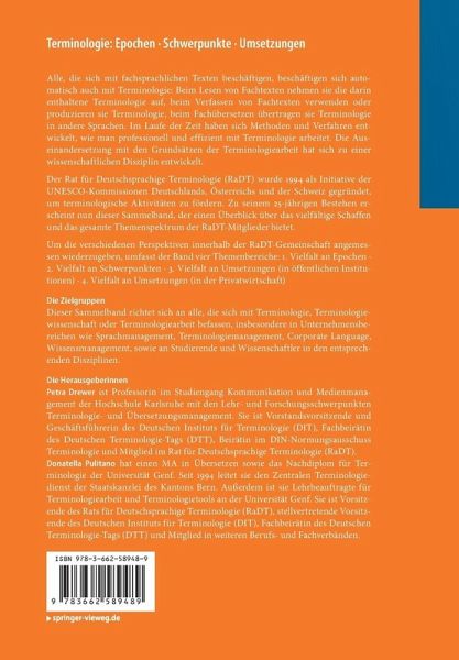Der Rat für Deutschsprachige Terminologie (RaDT) wurde 1994 als Initiative der UNESCO-Kommissionen Deutschlands, Österreichs und der Schweiz gegründet, um terminologische Aktivitäten zu fördern. Zu seinem 25-jährigen Bestehen erscheint nun dieser Sammelband, der einen Überblick über das vielfältige Schaffen und das gesamte Themenspektrum der RaDT-Mitglieder bietet.